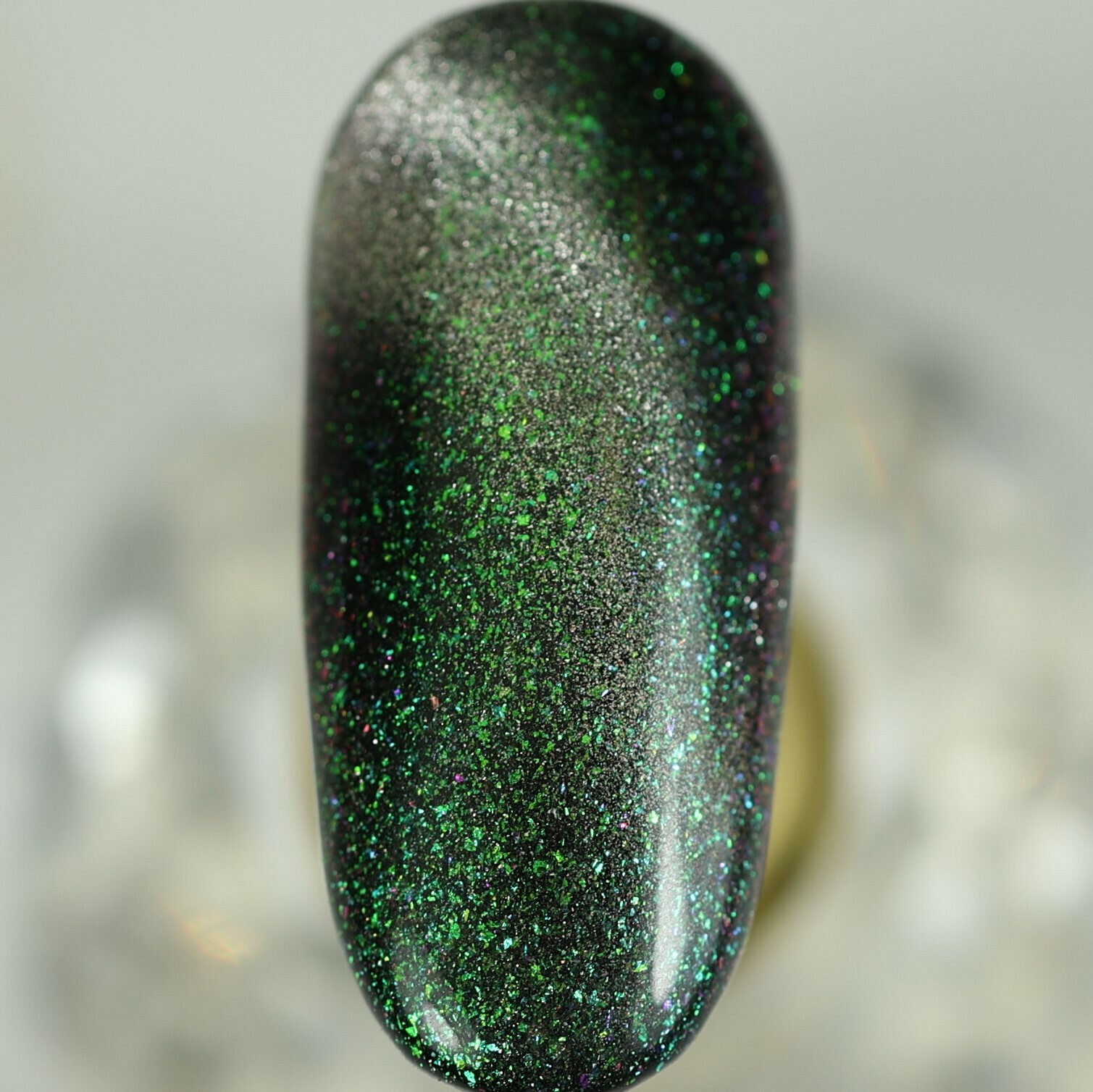 Гель-лак CRYSTAL CAT 1 з ефектом «кришталеве котяче око» у шампань відтінку з металевим сяйвом.
