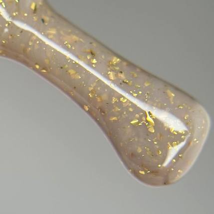 Камуфлююча база для нігтів з ніжним Бежевим відтінком і сяючими золотими вкрапленнями.