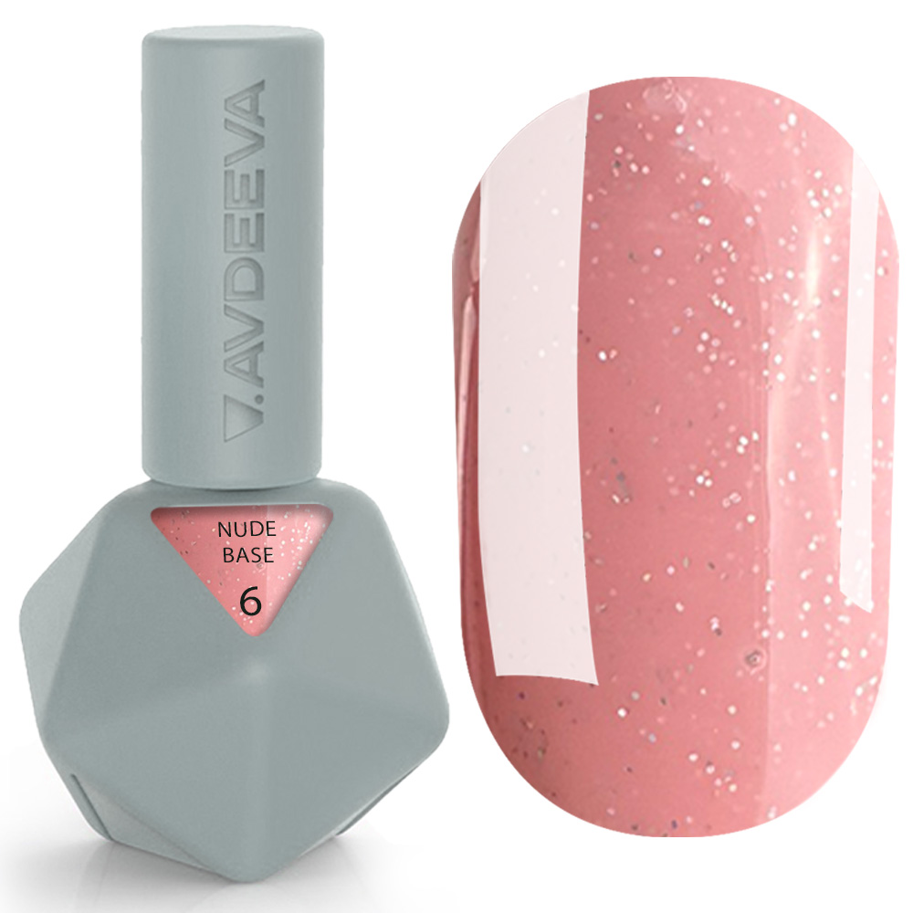 NUDE BASE 6 від Victoria Avdeeva – це камуюча база з ніжним рожевим нюдовим відтінком та вишуканим шиммером, що додає манікюру витонченого блиску. Завдяки самовирівнювальній формулі, база рівномірно лягає на нігті, маскує недосконалості та зміцнює пластину. Підходить для самостійного використання або як основа під гель-лак.