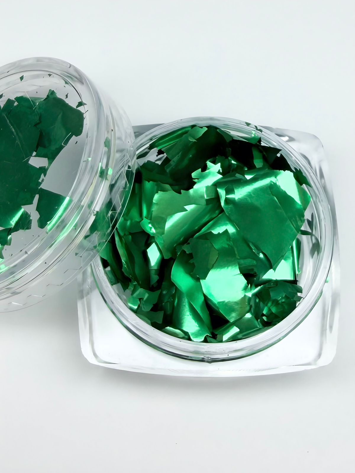 Поталь ультратонка Зелена. Дрібна. Для дизайну нігтів в банці.